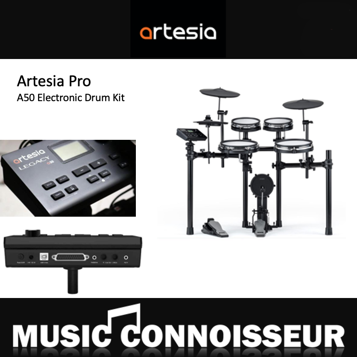 Pad sizes are 10" Hi Hats, 12" Crash and Ride, 10" Toms 1/2, 12" Floor Tom, 10" Snare and 6" Mounted Rubber Pad Bass Drum. Includes Bass Drum Pedal.