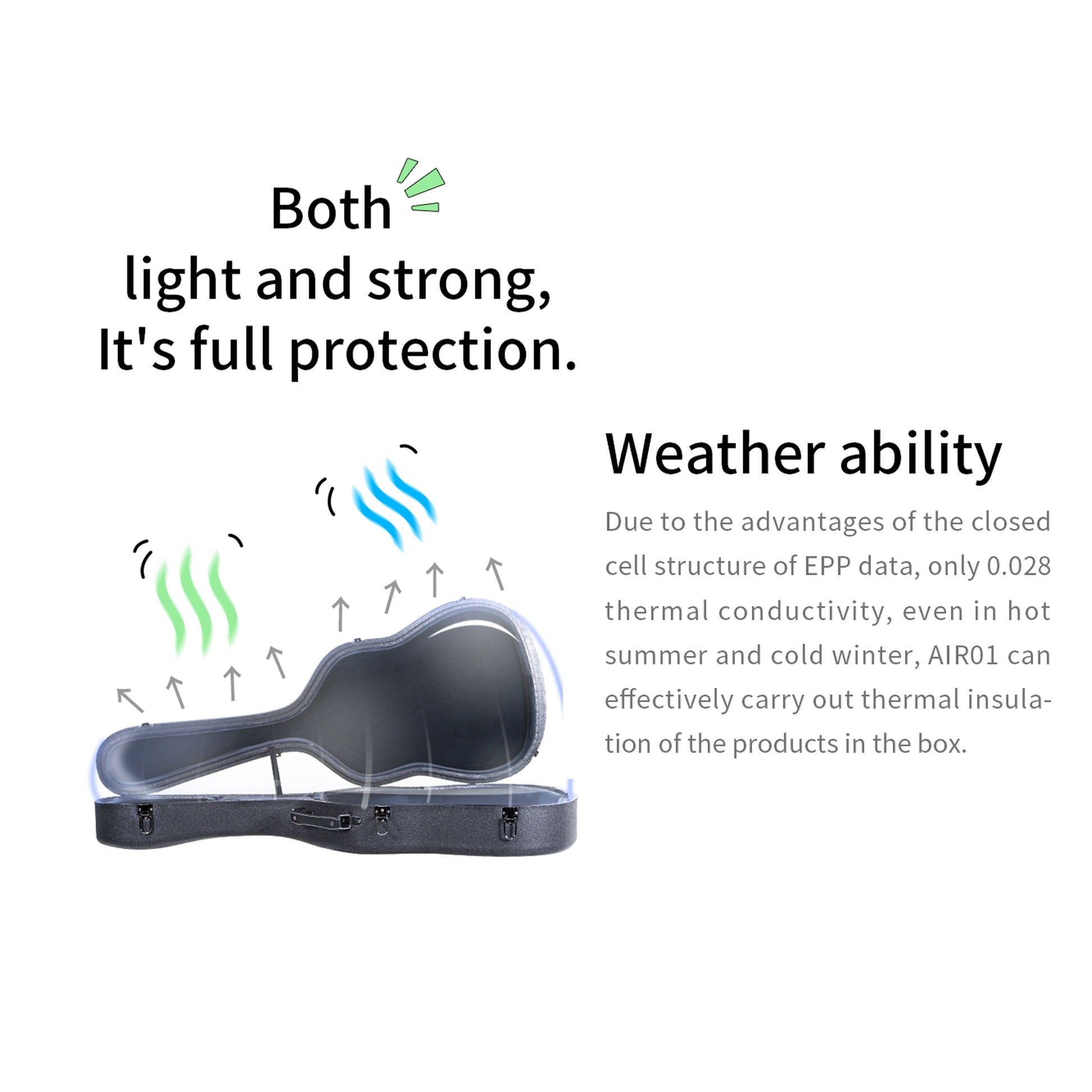 - The Air01 guitar box weighs only one-third of traditional guitar boxes.